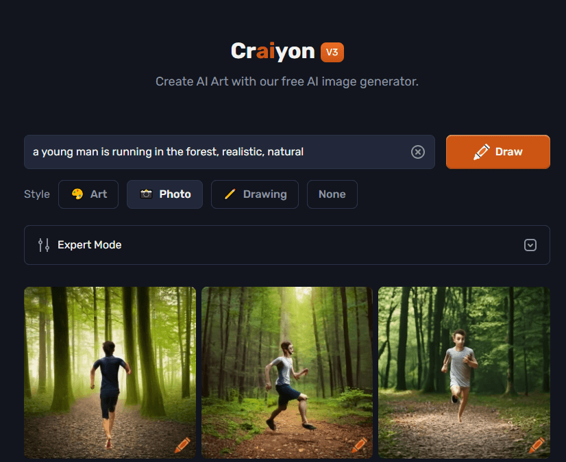 蜡笔它是一个极其简单的人工智能,可以从文本生成图像。没有复杂的设置,操作起来相当轻松。单击“绘制”后,您将获得九个高质量的输出。更重要的是,它现在完全免费使用,可以满足任意用户的需求。但如果您想要更快地生成图像,您可以将您的计划升级为专业计划。