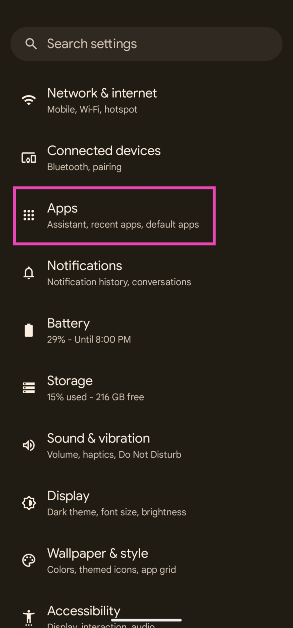 步骤2:向下滚动并选择应用程序。