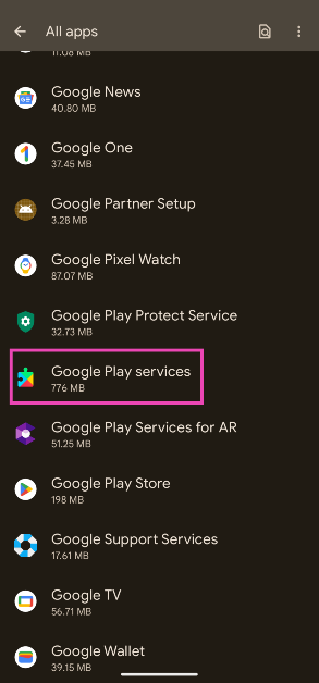 步骤2:点击谷歌播放服务。