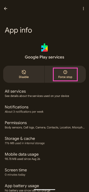 强制停止 Google Play 服务