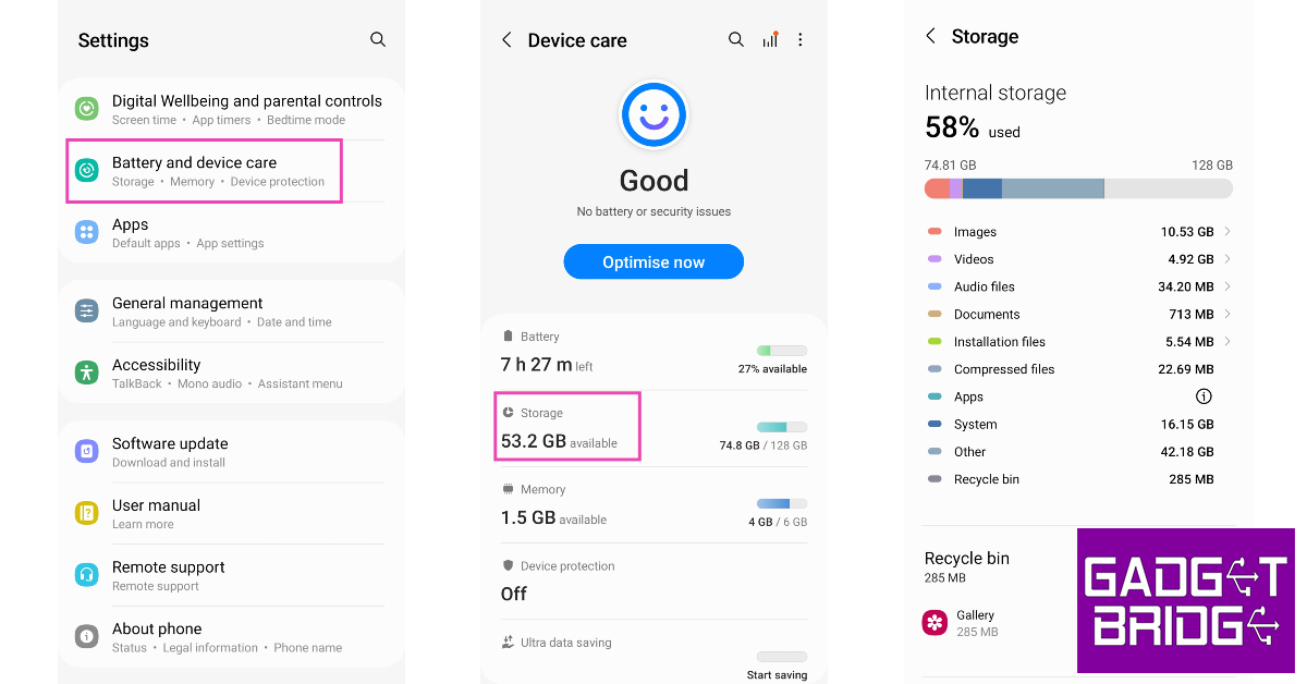 如果您的手机存储空间不足,Android 应用程序可能无法加载。要释放一些空间,请从手机中删除重复的文件和图像、未使用的应用程序以及其他杂物。前往设置>电池和设备维护>存储管理手机的存储空间。如果您的手机支持外部存储,请插入存储卡以扩展存储容量。