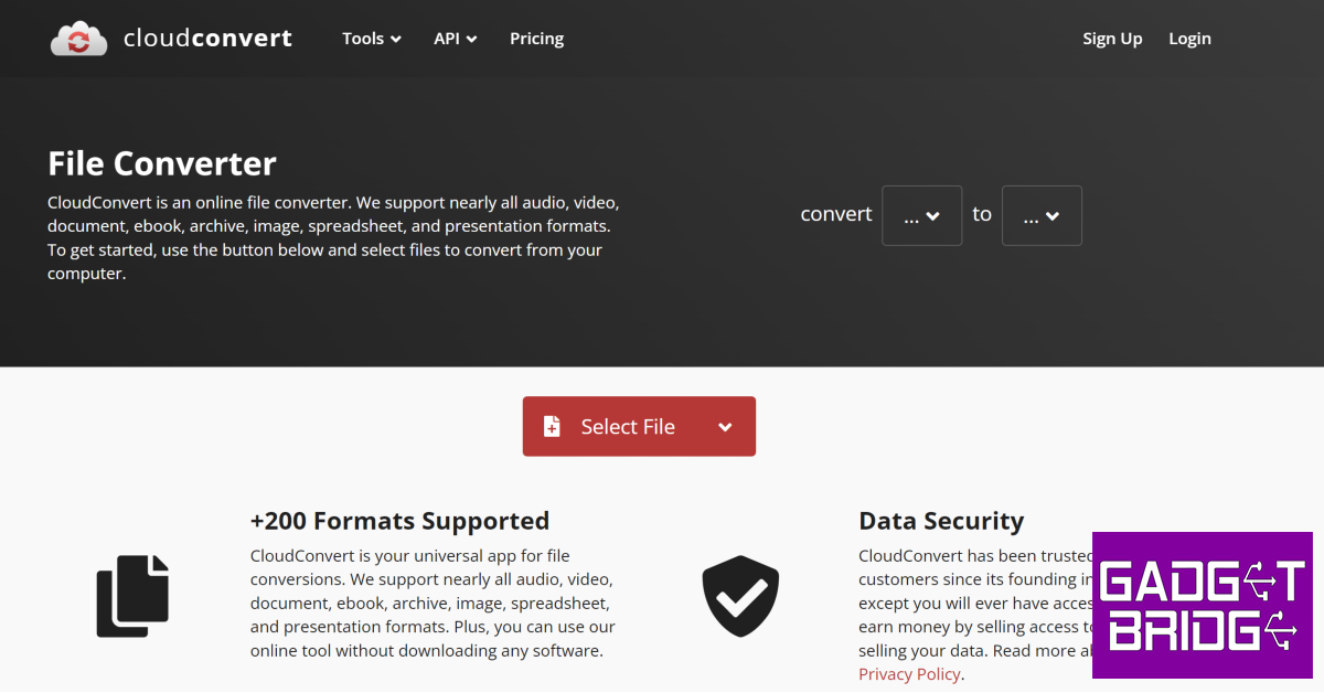 云转换是目前最通用的文件转换器之一。该工具可以将几乎任何类型的文件转换为您想要的格式。这包括 MP3、AAC、HTML、DOCX、MPEG、MOV,甚至 AIFC、LRF、PDB 等速率格式。要将 EPUB 文件转换为 PDF,只需单击“选择文件”的红色图标并上传电子书即可。 CloudConverter 会将电子书识别为 EPUB 文件。现在,单击“转换为”旁边的省略号,选择 PDF,然后点击转换。