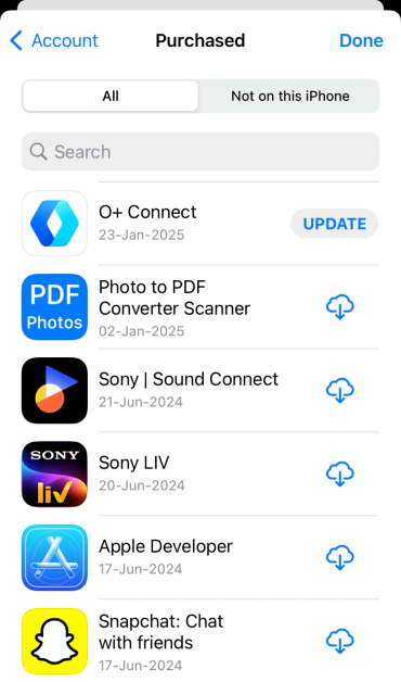 第4步:找到您要更新的应用程序。如果您在列表中找不到该应用程序,则需要使用以下方式登录苹果ID你曾经下载过它。