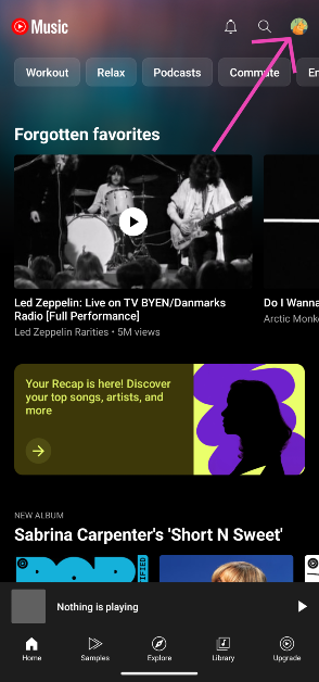 启动 YouTube Music 应用,点击您的个人资料照片,然后选择“您的回顾”。在 YouTube 应用程序上,转到“您”选项卡,然后点击“回顾”横幅即可查看。