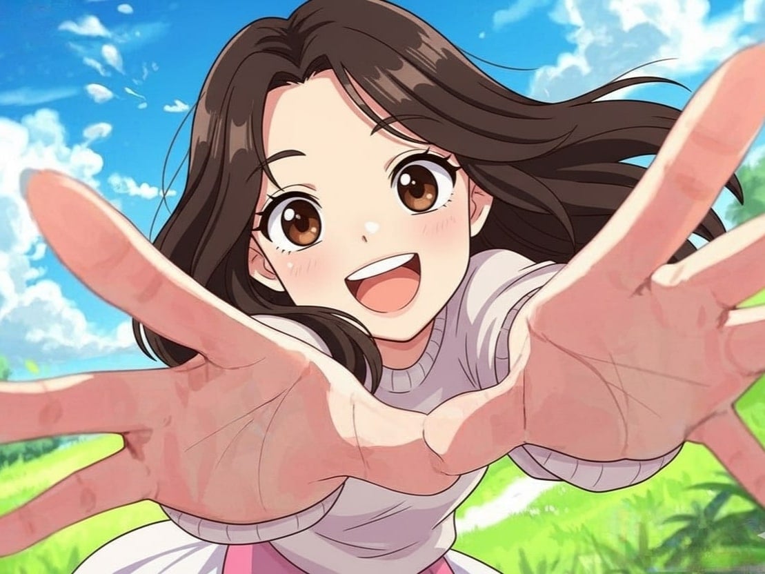 - 张开双臂,做出温暖、热情的拥抱姿势。