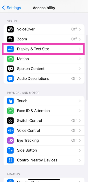 前往设置>辅助功能>显示和文字大小并关闭自动亮度旁边的切换开关。关闭“辅助功能”页面上的“Face ID 中的注意力感知”和“注意力”设置。最后,从显示设置中关闭原彩和夜视。