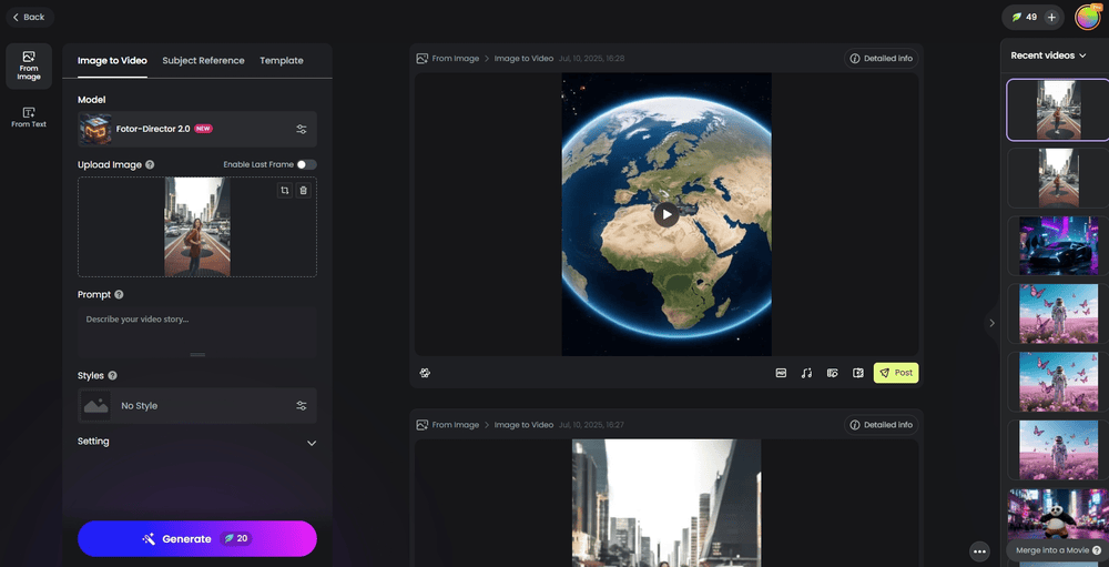 如果您想要最具电影感和高品质的缩小效果,Fotor AI 是无可匹敌的。最重要的是,只要您注册一个帐户,就可以完全免费生成视频。它会给你免费的积分来尝试。