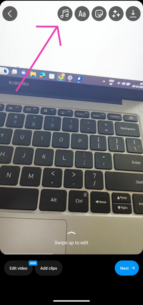 步骤2:击中音乐笔记图标在编辑页面的顶部。