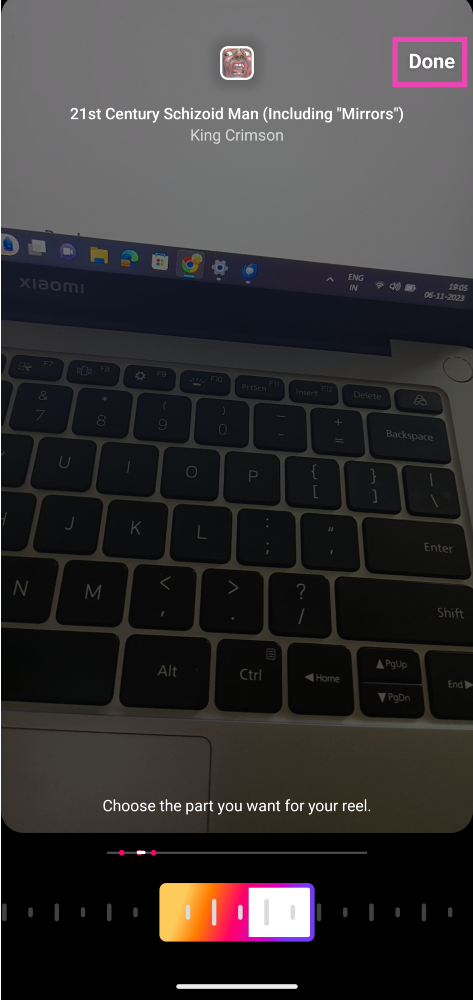 第4步:使用搜索栏选择您想要作为卷轴背景音乐的歌曲部分。