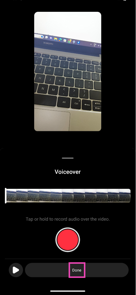 第4步:点击或按住红色按钮为您的 Reel 录制画外音。