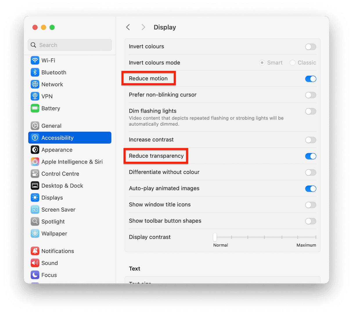 macOS Tahoe 使用更多电量来实现视觉效果,因此动画在 Mac 上可能不流畅。以下是关闭这些效果的方法: