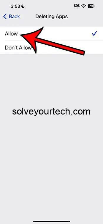 要检查限制,请转到“设置”,点击“屏幕时间”,然后点击“内容和隐私限制”。如果“删除应用程序”已关闭,请将其打开。这应该允许您删除应用程序。这是一个简单的修复方法,可以为您省去很多麻烦。