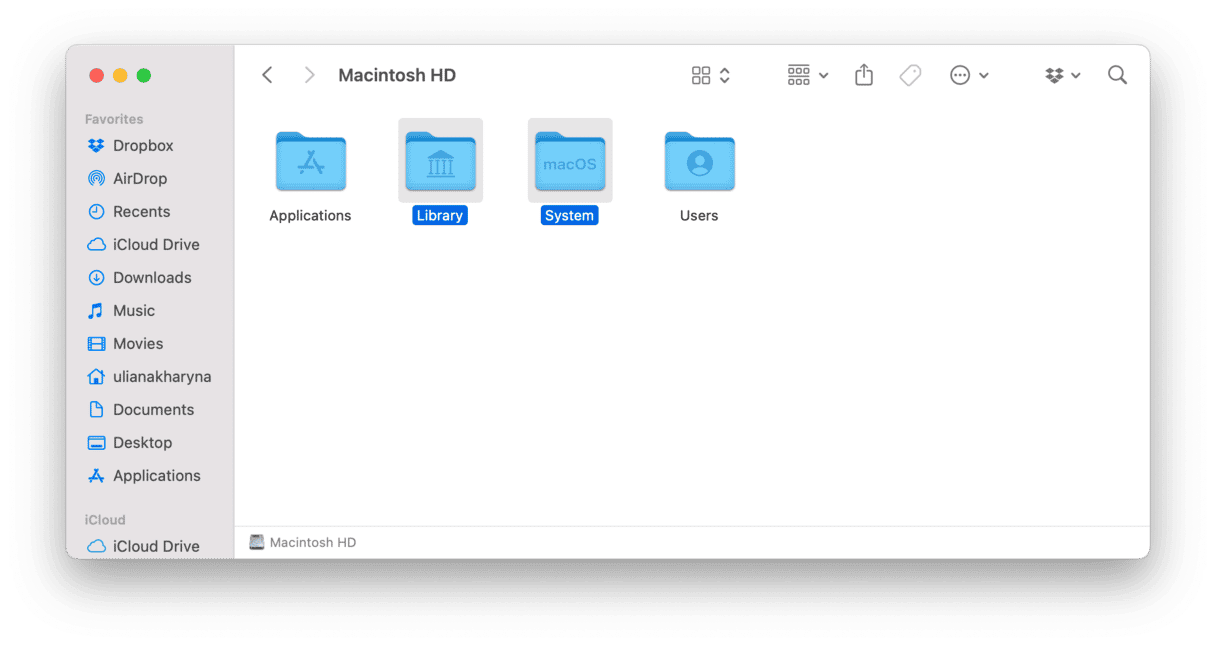 macOS 系统数据主要存储在 System 和 Library 文件夹中。