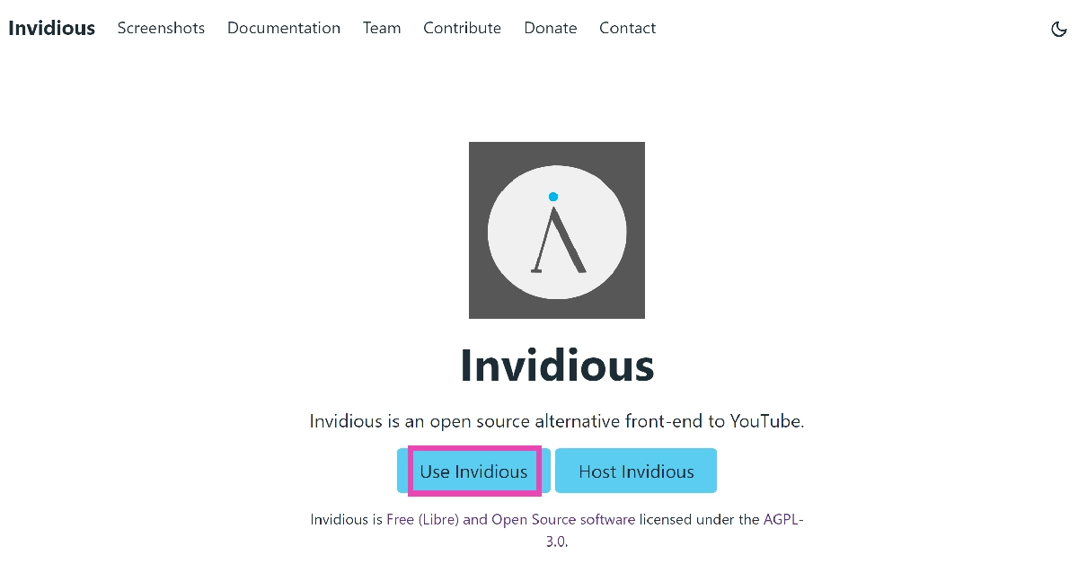 步骤一:前往https://invidious.io/并点击使用令人厌恶的。