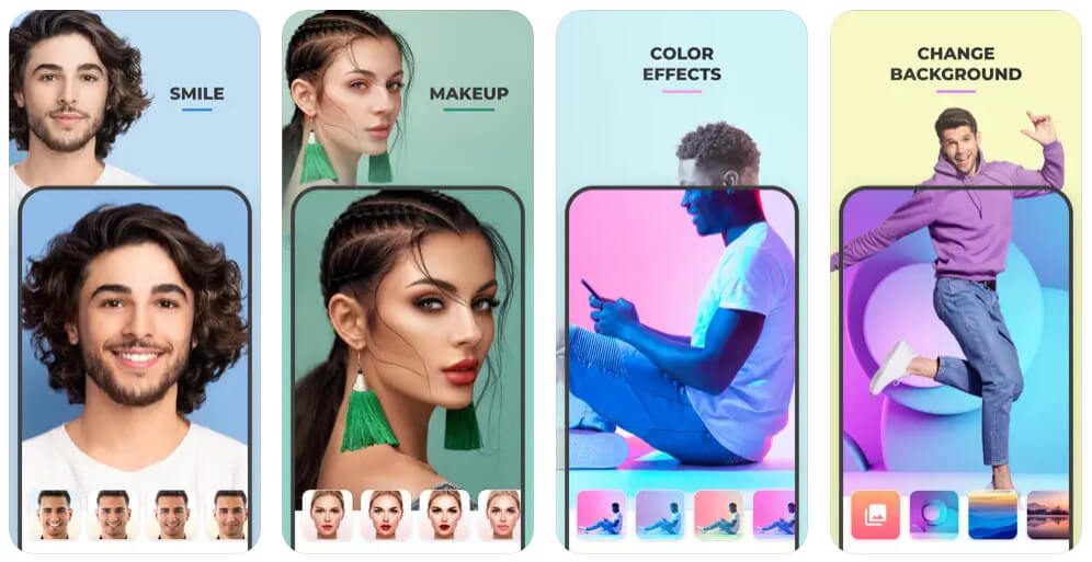 - 强大的人工智能工具:性别互换、老年轻过滤器、微笑编辑器