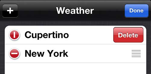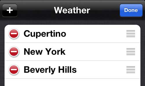 幸运的是,您可以从 iPhone 5 天气应用程序中随意添加和删除城市。
