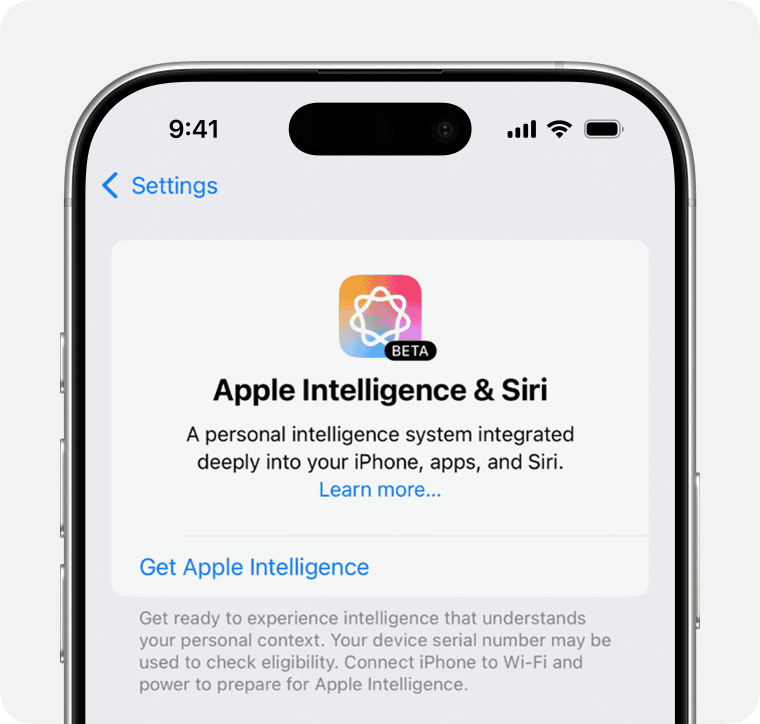 - 在 iPhone/iPad 上:前往设置 > Apple Intelligence 和 Siri。您应该会看到“打开 Apple Intelligence”的选项。