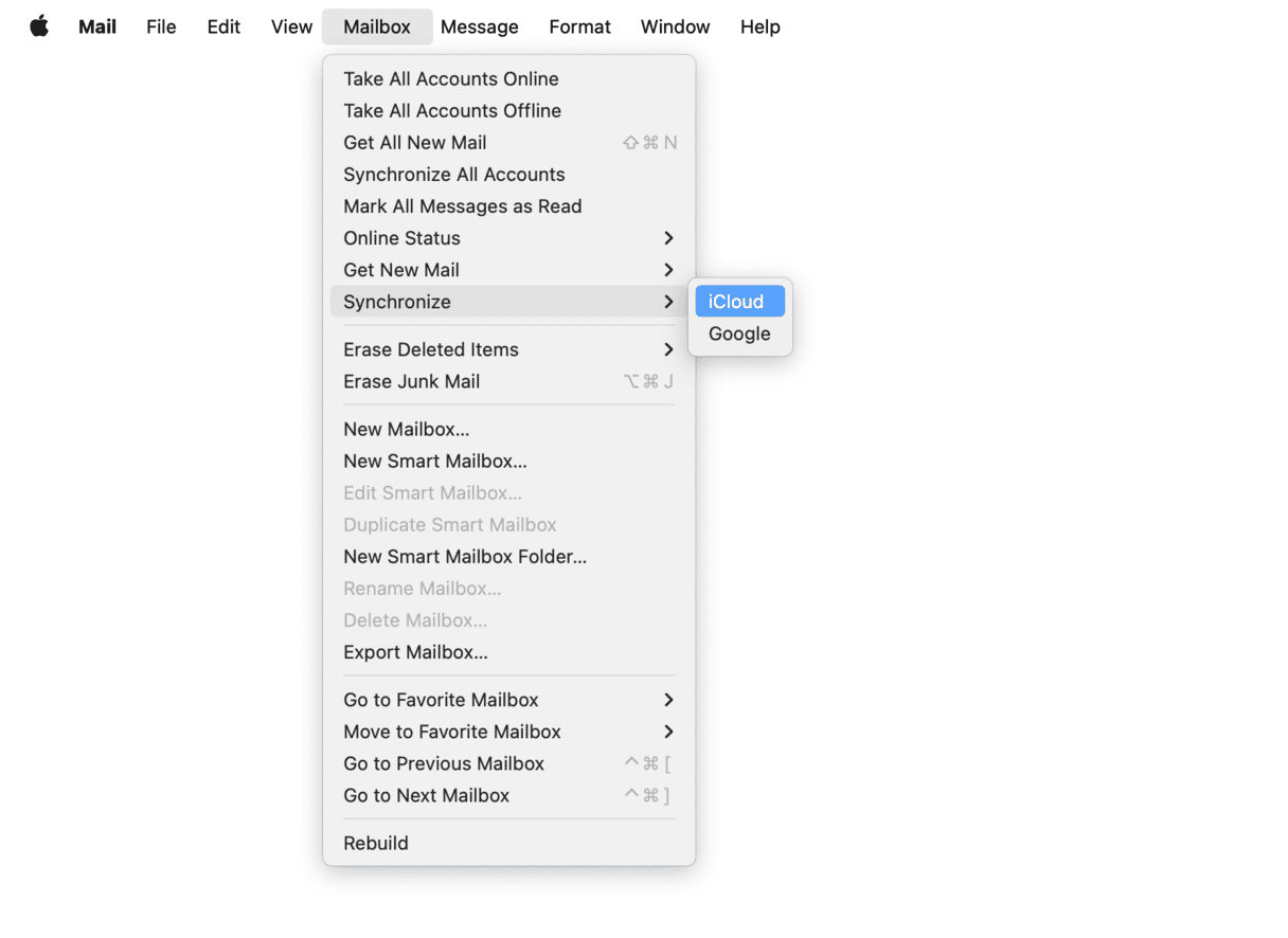 - 打开“邮件”应用程序,然后单击菜单栏中的“邮箱”。