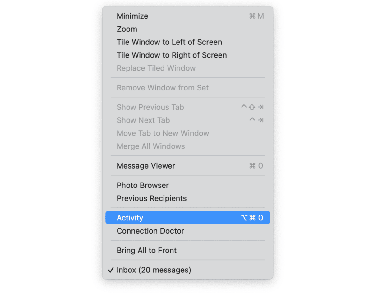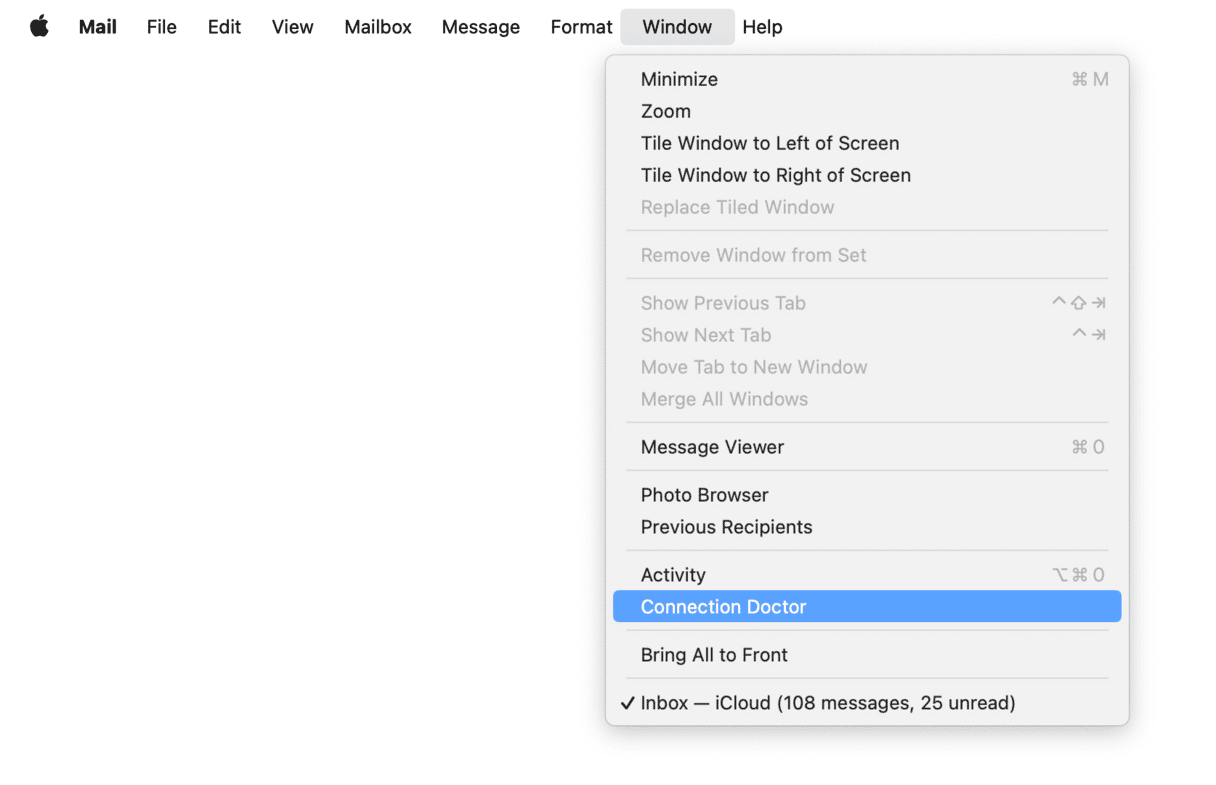 - 打开“邮件”并单击菜单栏中的“窗口”。