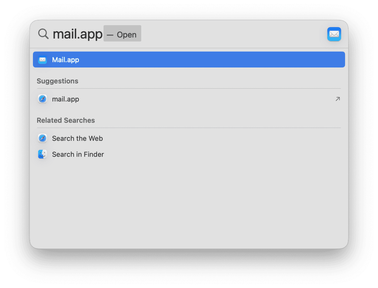 - 搜索邮件。如果该应用程序不存在,请使用 Spotlight 功能查找其位置。