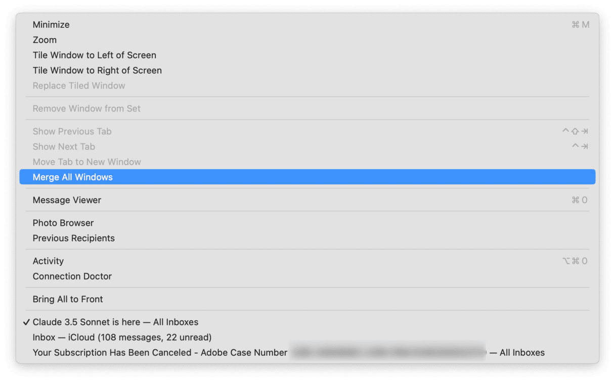 如果您清理了邮件垃圾,它应该有助于加快邮件应用程序的速度。如果没有,还有另一个快速解决方案 - 合并窗口。问题是,您的邮件可能会很慢,因为它必须处理埋在其他应用程序下面的大量打开的窗口。