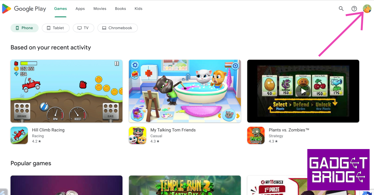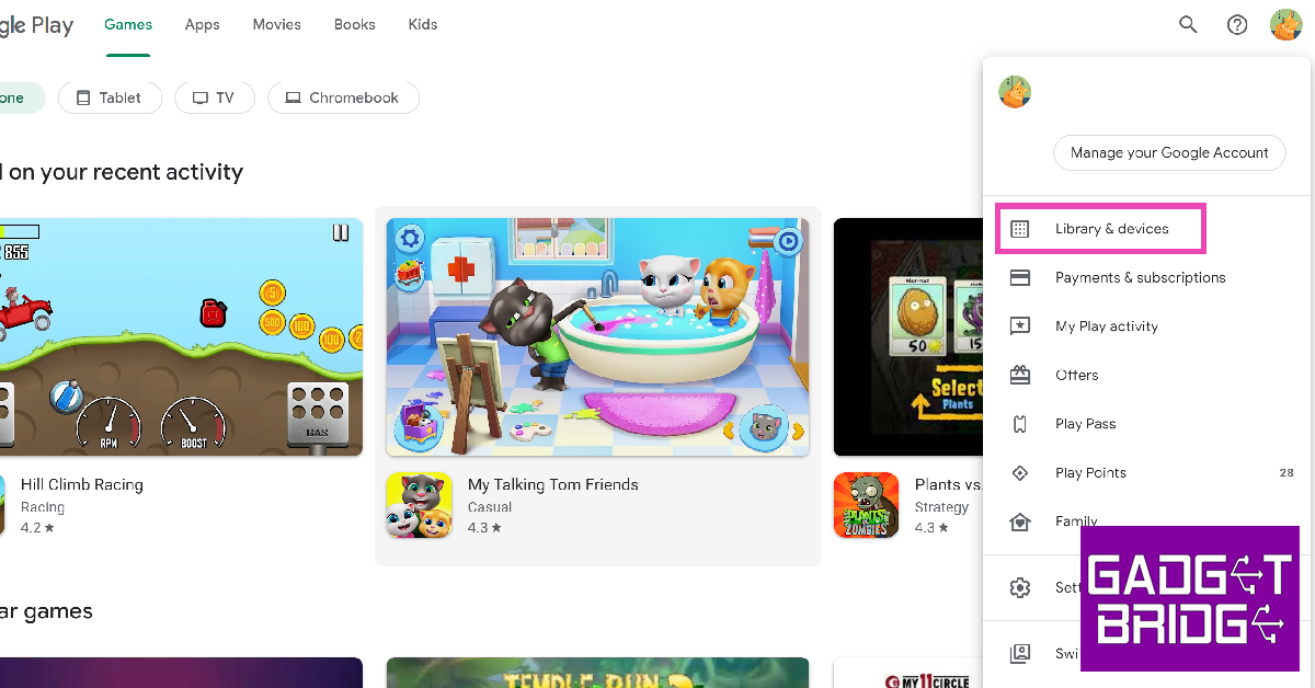 步骤2:单击您的个人资料图标并选择屏幕右上角的库和设备。