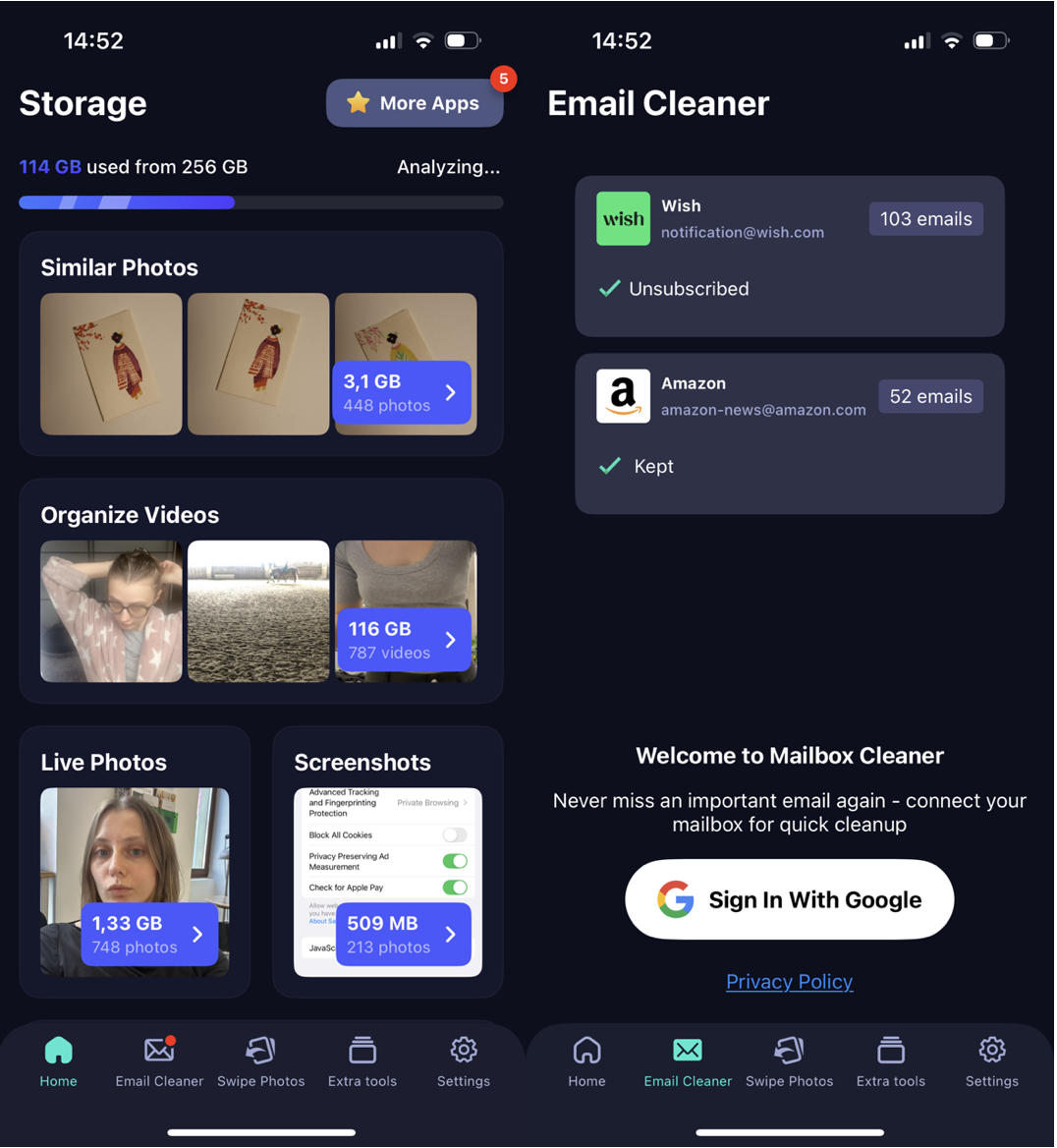 这是一个简单易用的应用程序,您无需注册或分享联系方式。它的作用正如其所言,帮助您快速回收 iPhone 存储空间,这对于那些寻求简化清洁程序的人来说是完美的选择。