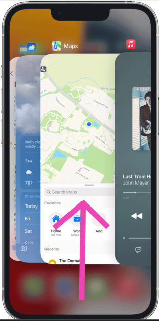 从屏幕底部向上滑动并按住手势即可访问应用程序切换器。要一次关闭多个应用程序,只需使用不同的手指向上滑动应用程序即可。您一次最多可以关闭 5 个应用程序。