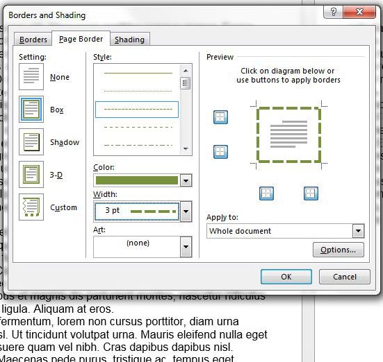 第 7 步:单击好的单击此窗口底部的按钮可关闭窗口并将页面边框应用到文档。