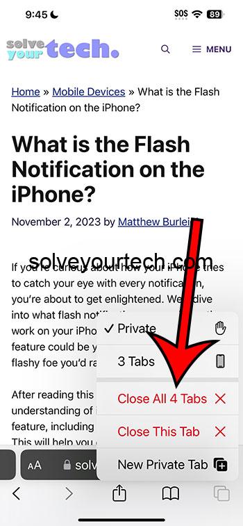 关闭 iPhone 上 Safari 中的所有私人标签页可以瞬间完成。只需打开 Safari,按住选项卡按钮,然后点击“关闭所有 X 选项卡”即可。瞧,您的浏览记录已被清除!