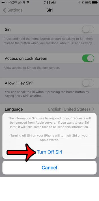 第 4 步:确认您了解选择禁用 Siri 会发生什么情况,然后点击关闭 Siri按钮。
