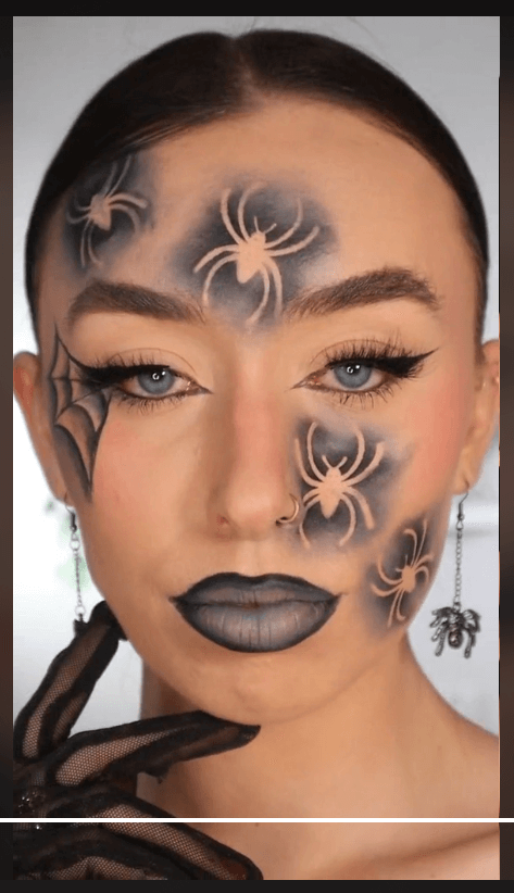 尝试使用喷雾和蜘蛛网眼睛装饰的更复杂的全脸蜘蛛造型。