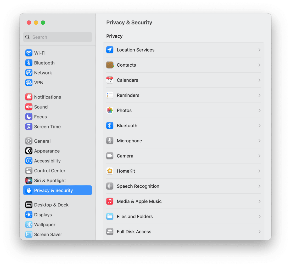 Mac 上安装的任何软件都需要一些权限,键盘记录器也不例外。有时,用户是故意授予它们的;在其他情况下,他们可能会错误地这样做。幸运的是,检查授予应用程序的权限非常简单: