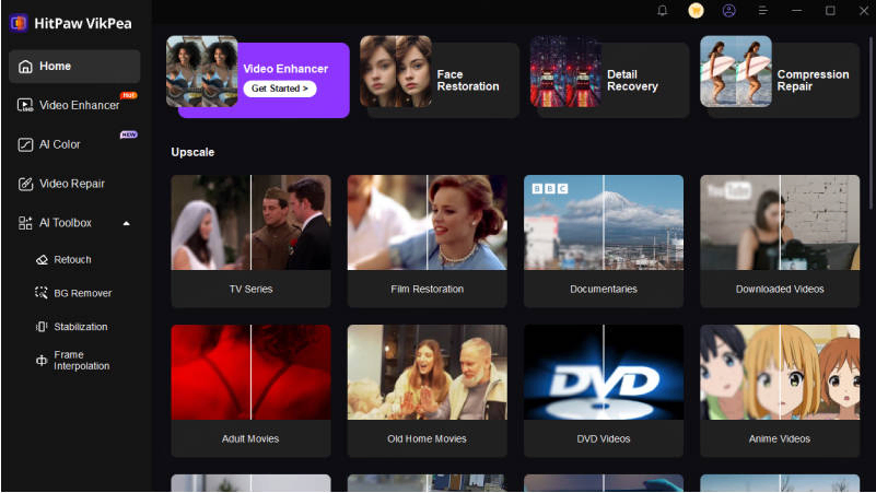HitPaw Video Enhancer (HitPaw VikPea) 使用人工智能来提高视频质量。它专为需要增强低质量素材、恢复旧视频或为其媒体添加专业润色的用户而设计。