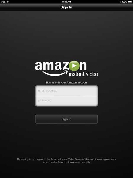 我们将从 App Store 下载一个名为 Amazon Instant 的应用程序。然后,您需要知道您的 Amazon Prime 帐户的电子邮件地址和密码。