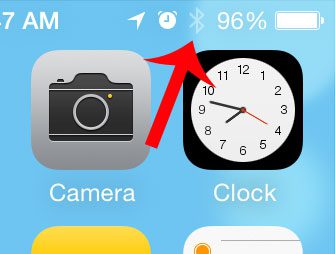 实际上,您可以在几个不同的地方进行检查,但最简单的方法是查看 iPhone 屏幕顶部的状态栏。蓝牙图标显示在屏幕的右上角,如下图所示。