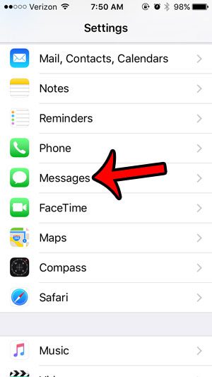 本文中的步骤是在运行 iOS 9.3 的 iPhone 5 上执行的。此步骤将关闭消息应用程序的已读回执选项。这意味着人们将不再能够判断您是否已阅读他们发送的短信。