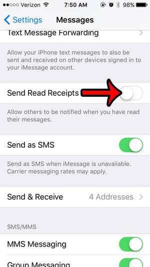 我们下面的教程将向您展示如何更改 iPhone 上的此设置,以便人们不再能够知道他们发送给您的消息何时已被阅读。