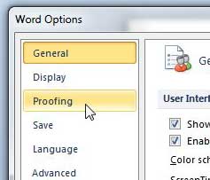 第 4 步:单击打样左栏中的选项单词选项窗户。