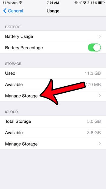 第 4 步:点击管理存储按钮下的贮存菜单部分。