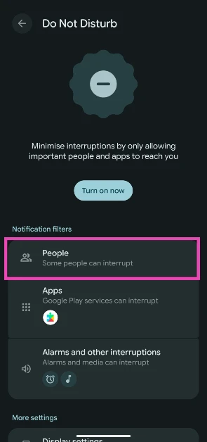 将联系人添加到 Android 16 上的“请勿打扰”白名单中