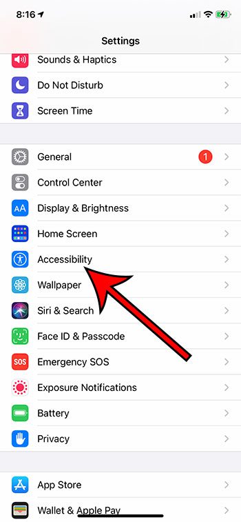 步骤 2:向下滚动并选择无障碍选项。