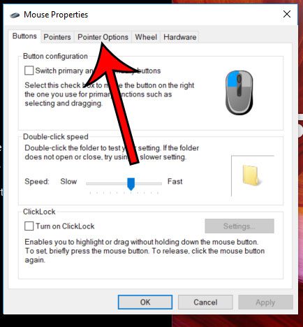 第 6 步:选择指针选项窗口顶部的选项卡。