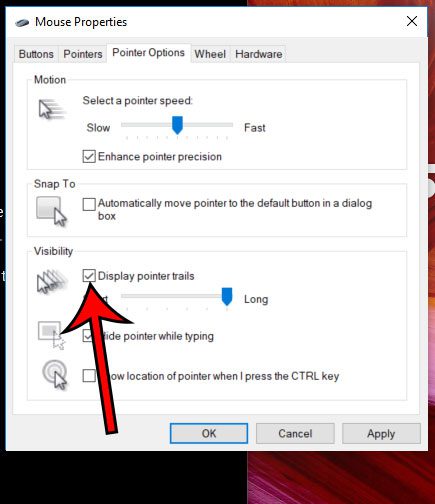 步骤 7:选中或取消选中左侧的框显示指针轨迹,然后单击申请按钮,然后是好的按钮。