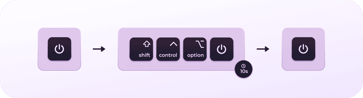 - 按住 Shift + Control + Option 和电源按钮 10 秒钟。