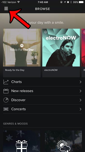 - 点击菜单屏幕左上角的图标。它是具有三条水平线的图标。