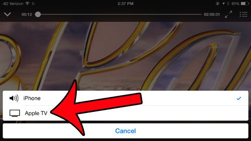 要停止在 Apple TV 上播放电影,只需再次点击 iPhone 上的屏幕,触摸屏幕图标,然后选择 iPhone 选项即可。