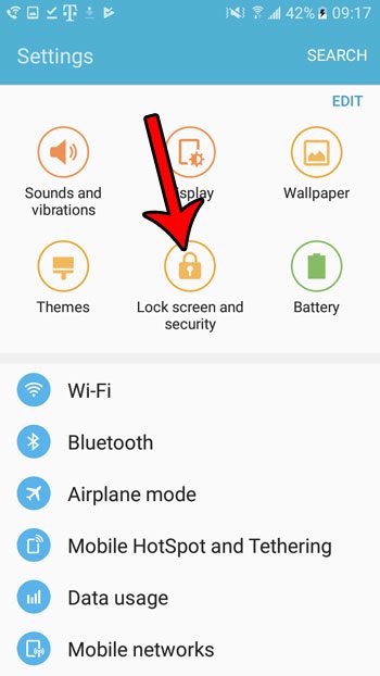 第 3 步:触摸锁屏和安全按钮位于屏幕顶部附近。