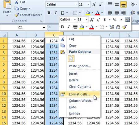 步骤 3:右键单击列字母,然后单击设置单元格格式。