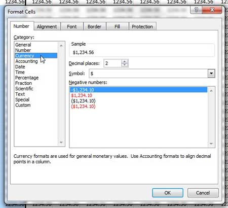 第 3 步:单击数字窗口顶部的选项卡,然后单击货币在窗口左侧的列中。如果您不想使用默认的 2 位小数,您还可以指定要使用的小数位数。点击好的单击窗口底部的以应用这些更改。